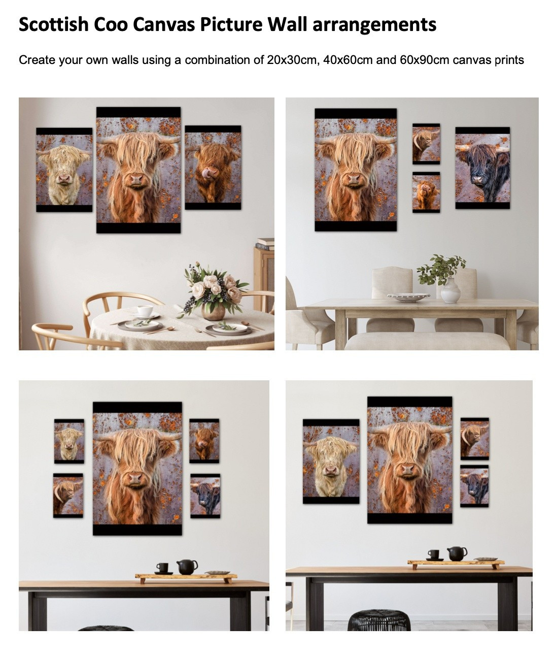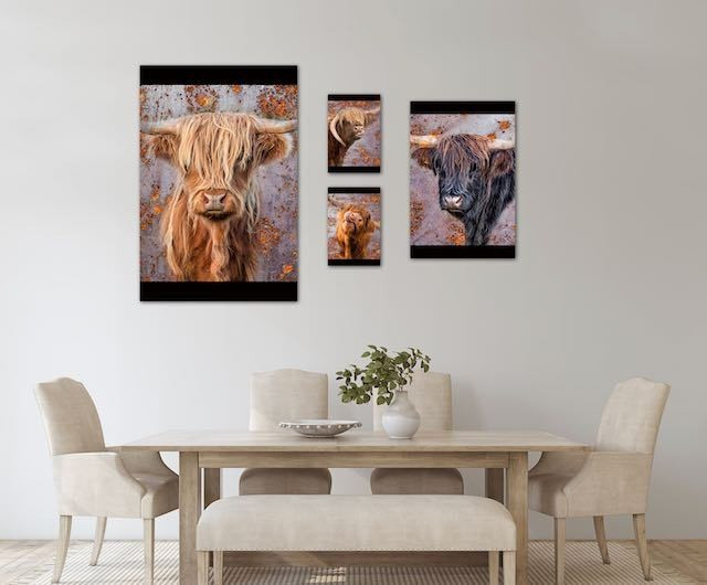 Examples of curated walls and rooms with coo portraits. Ready to hang on Stretched Canvas - Very Special Pricing $Aud 100 Printing/delivery arranged by email with Walter